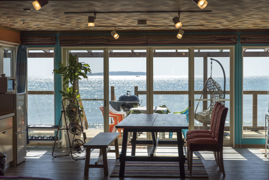お食事スタイルは、旅の過ごし方に合わせて自由にアレンジ。キッチン付きダイニングで食材を持ち込んで調理を楽しんだり、BBQセットを追加してみんなでワイワイ過ごしたり、鮨「海の彩」で、ゆっくりとした夕食の時間を楽しむのもおすすめです。その日の気分で選べる“自由な滞在スタイル”もグランピング福岡ならではの魅力。夜は、焚火を囲んで語り合ったり、波の音を感じながら砂浜へ散歩に出かけたり。何気ない時間こそが、きっと一番の思い出になります。